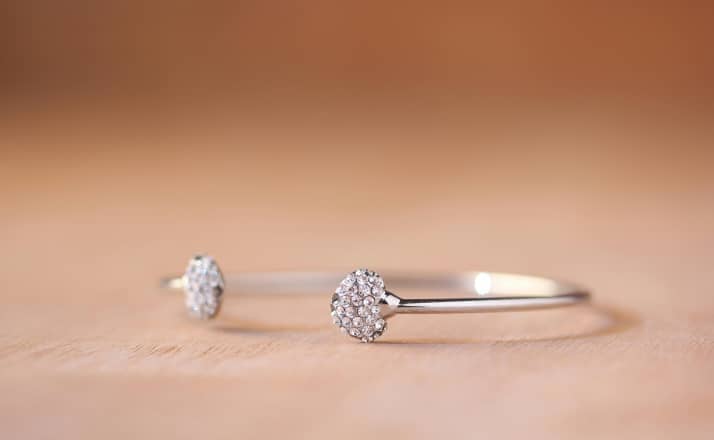 Anillo de compromiso en oro blanco con diamante central rodeado de delicados brillantes, de diseño clásico